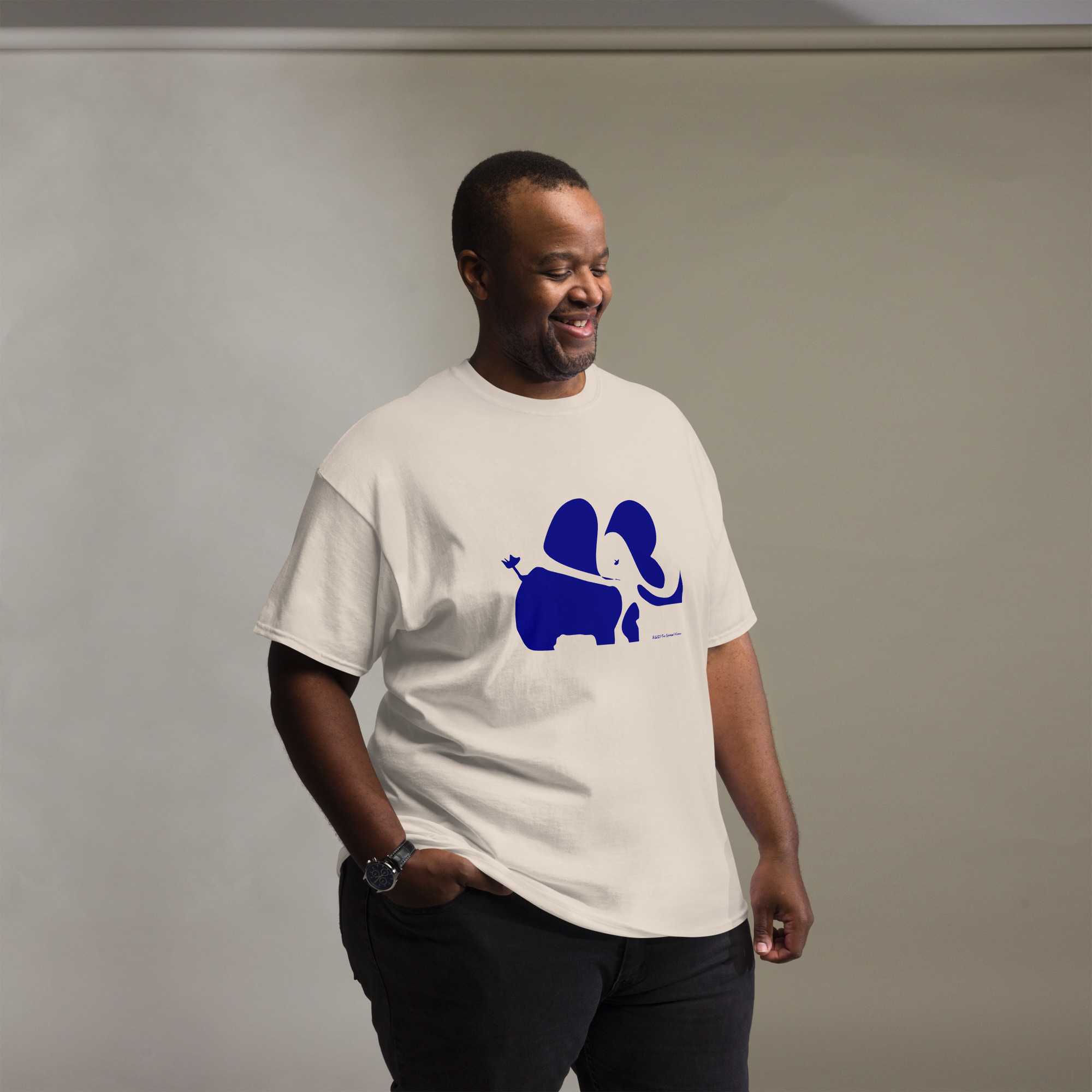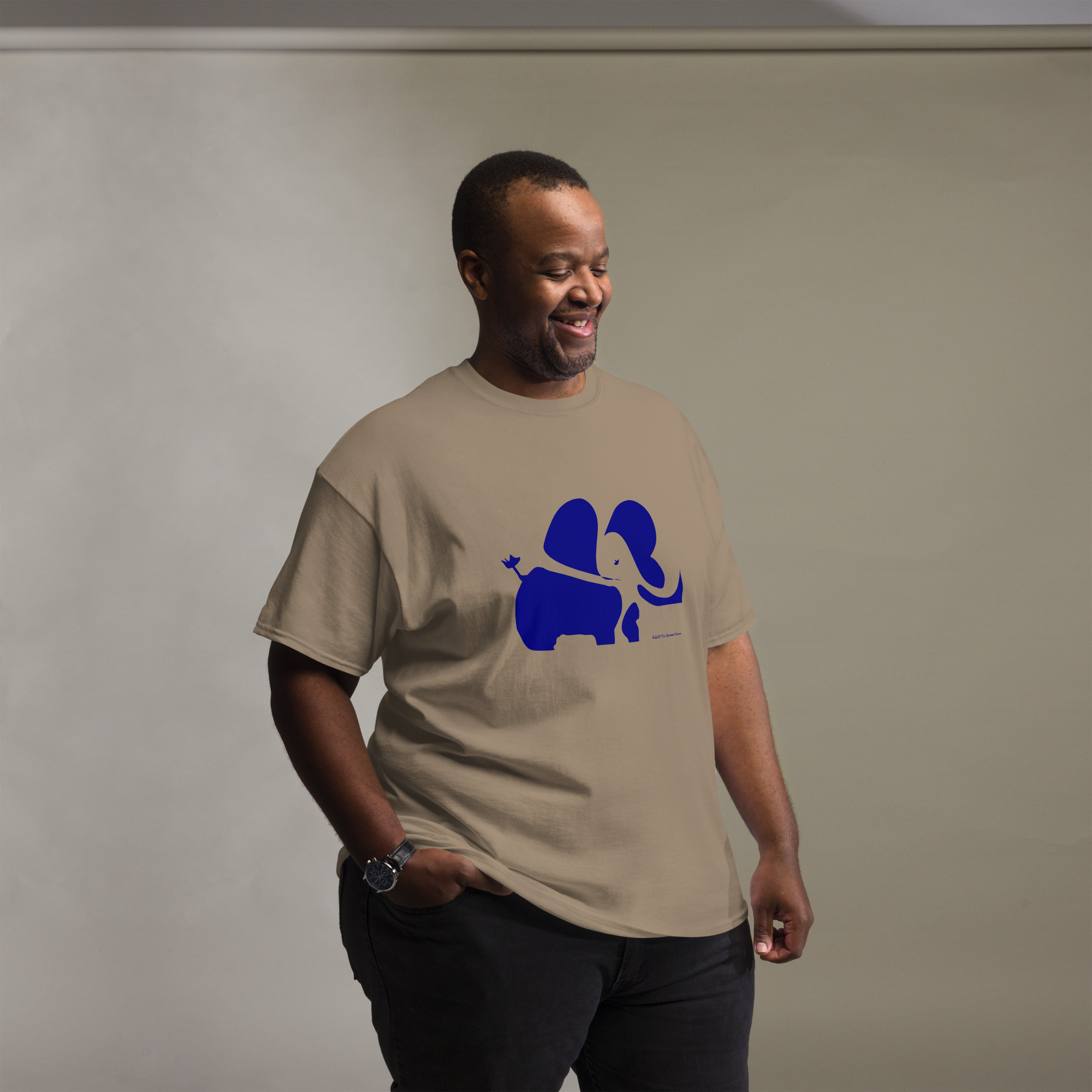 The 100% cotton men’s classic tee will help you land a more structured look. It sits nicely, maintains sharp lines around the edges, and goes perfectly with layered streetwear outfits. Plus, it’s extra trendy now!