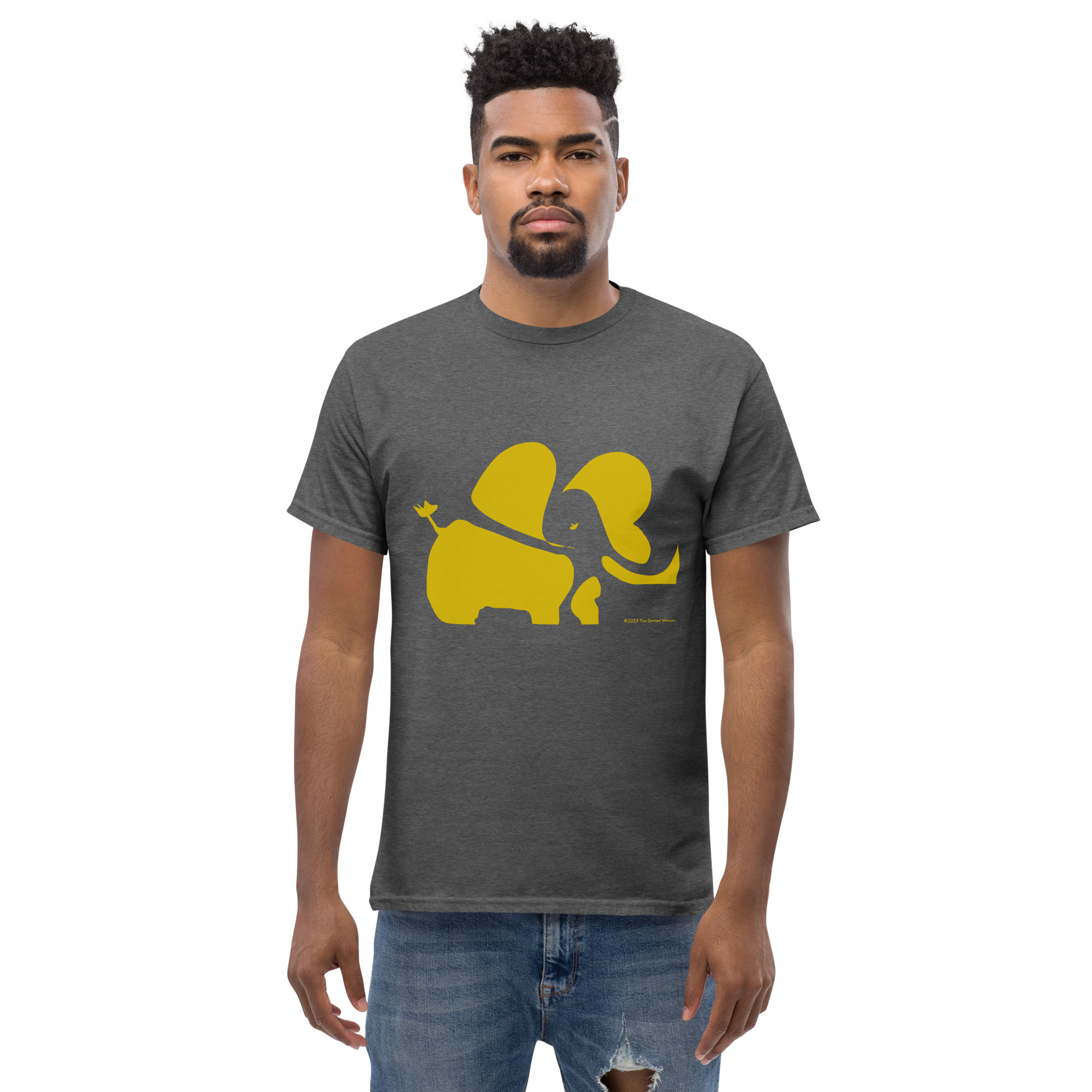 The 100% cotton men’s classic tee will help you land a more structured look. It sits nicely, maintains sharp lines around the edges, and goes perfectly with layered streetwear outfits. Plus, it’s extra trendy now!